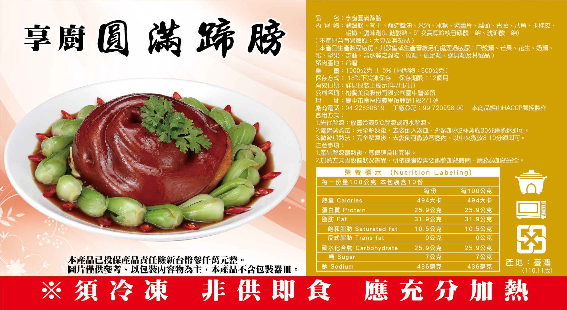 嚴選國產豬肉,享大廚以獨特中藥滷包特製滷汁,慢火燉煮,肉質結實,外皮Q軟不油膩! 色、香、味俱全,令人垂涎三尺!!